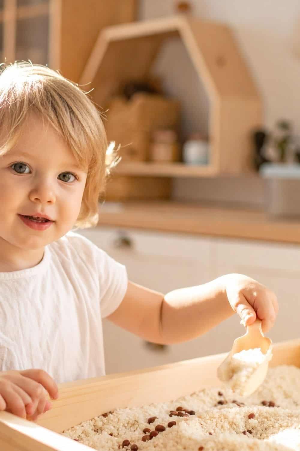 Many sensory activities have a calming effect. Repetitive motions like stirring, squeezing dough, or running hands through rice can help kids regulate big emotions and feel more grounded.